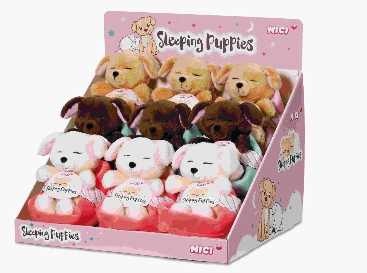 Die schlafenden Hunde die ‚Sleeping Puppies‘ von NICI sind in drei verschiedenen Farben sortiert. Kuschlig, weiche und unglaublich niedliche Hundebabys können es kaum erwarten mitsamt ihrem Körbchen in ein neues Zuhause einzuziehen.